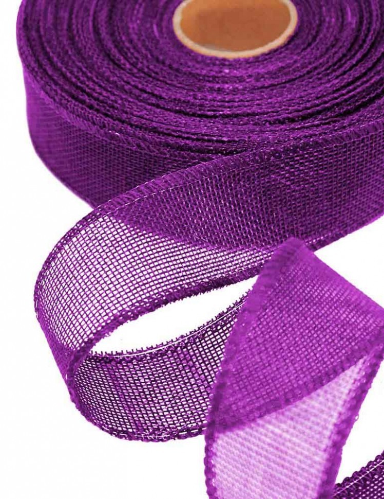 Лента Льняная 4см х 28м с проволокой (Фиолетовый)