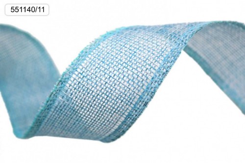 Лента Льняная 4см х 28м с проволокой (Голубой)