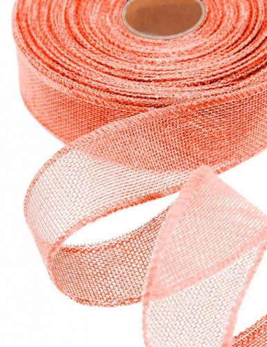 Лента Льняная 4см х 28м с проволокой (Розовый)