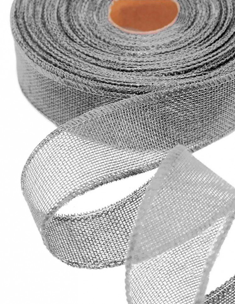 Лента Льняная 4см х 28м с проволокой (Серый)