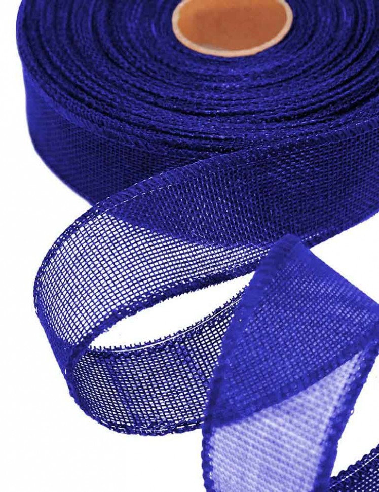 Лента Льняная 4см х 28м с проволокой (Синий)