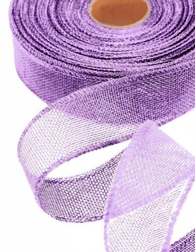 Лента Льняная 4см х 28м с проволокой (Сиреневый)