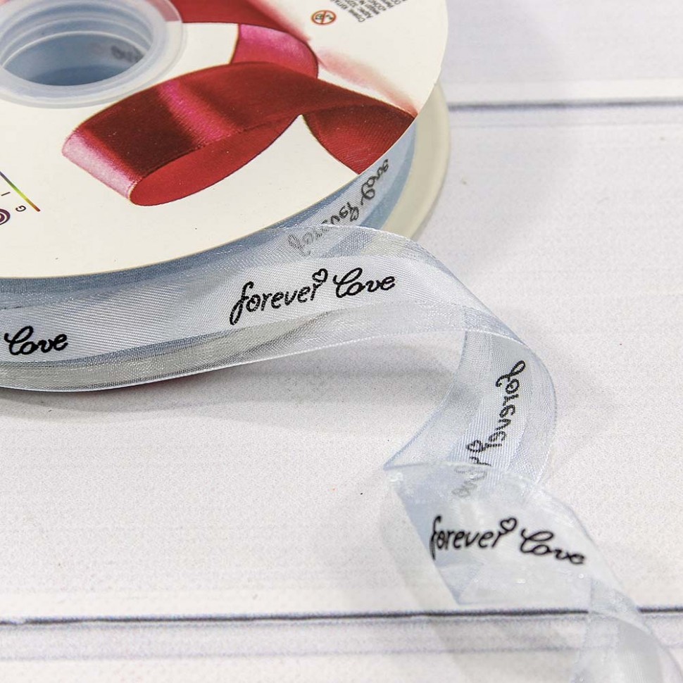 Лента Органза 2,5см х 110м "Forever love" (Серебряный)