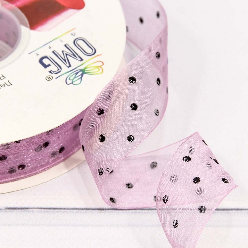 Лента Органза 2,5см х 110м горох (Сиреневый)