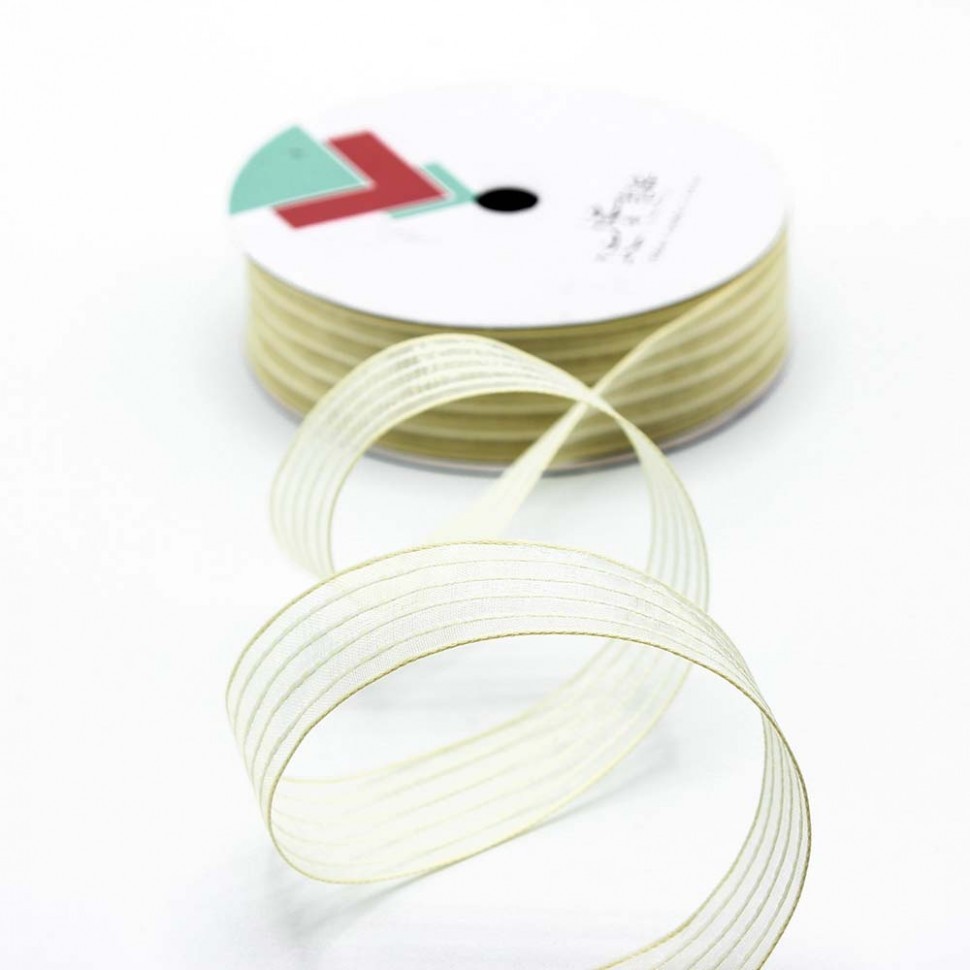 Лента Органза 2,5см х 22м в полоску (Люкс) (Бежевый)