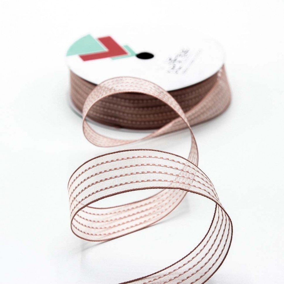 Лента Органза 2,5см х 22м в полоску (Люкс) (Коричневый)