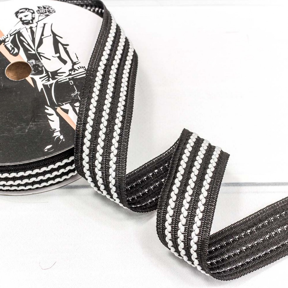 Лента Полиэстер 2,5см х 20м с зигзагом (Черный)