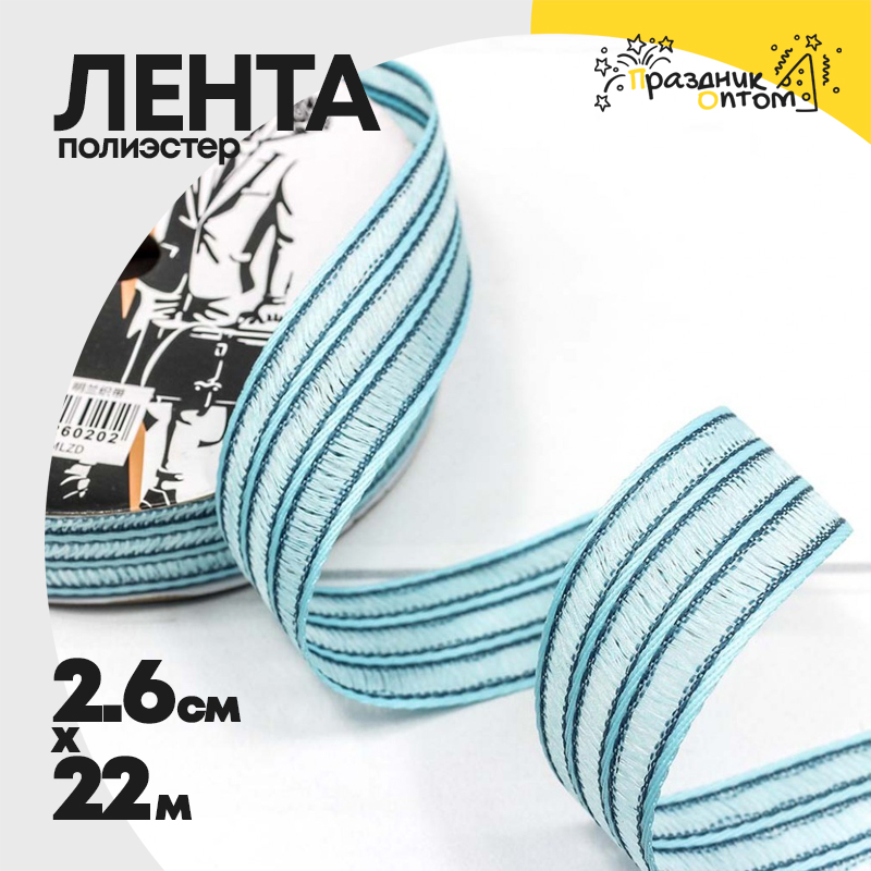 Лента Полиэстер 2,6см х 22м в полоску (Голубой)
