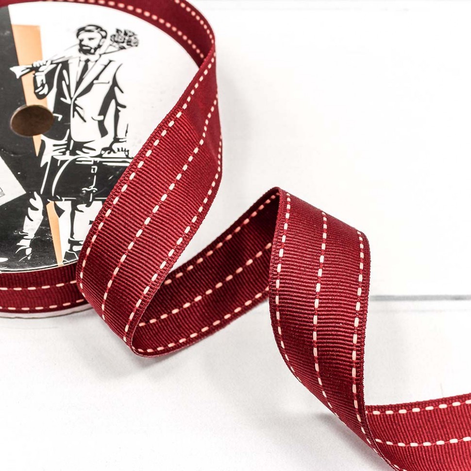 Лента Полиэстер 2,6см х 22м в пунктирную полоску (Красный)