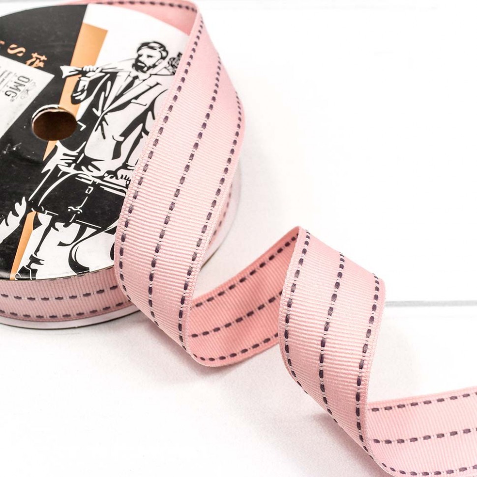 Лента Полиэстер 2,6см х 22м в пунктирную полоску (Розовый)