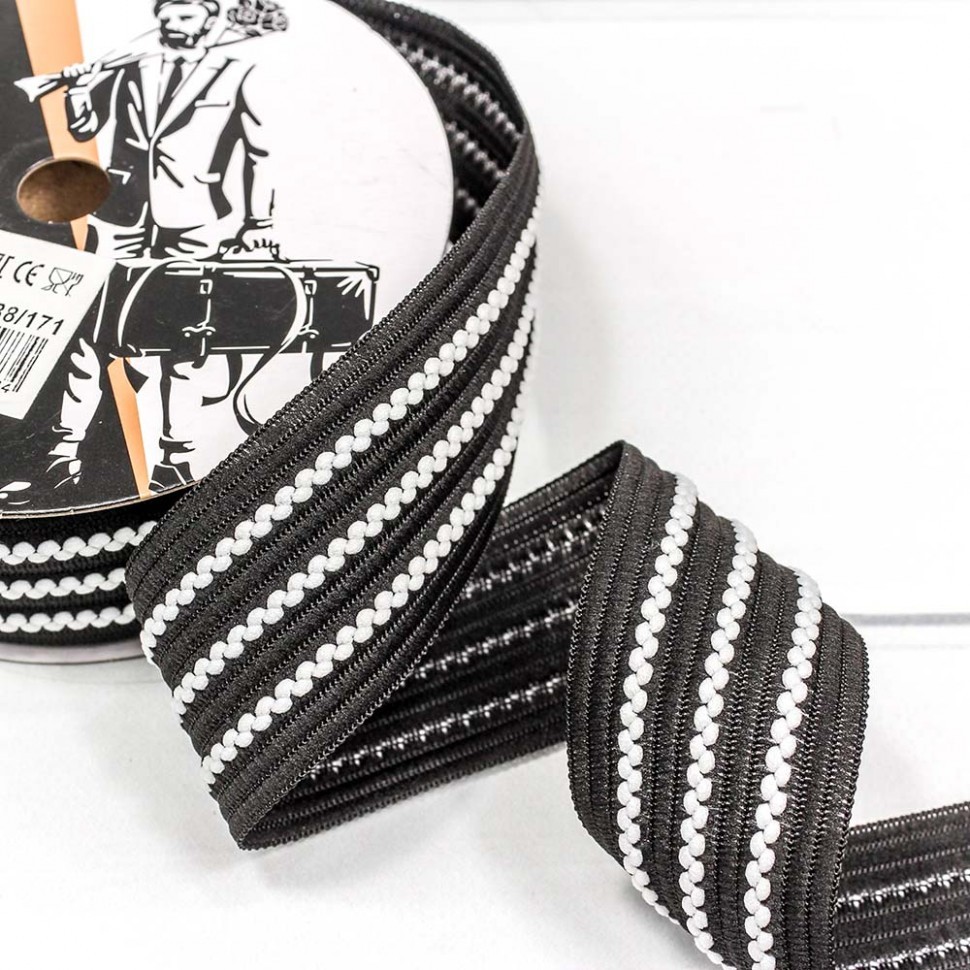 Лента Полиэстер 3,8см х 20м с зигзагом (Черный)