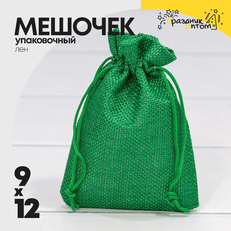 Мешочек 9х12см Лен искусственный (Зеленый)