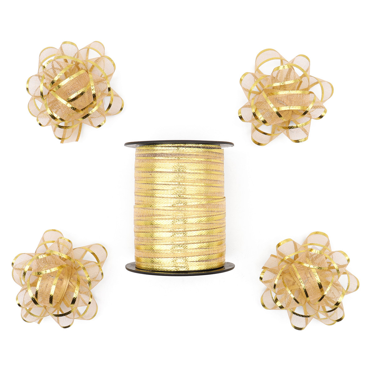 Набор Для Упаковки Лента, 1см*10м, 4 Бантика (золотая)