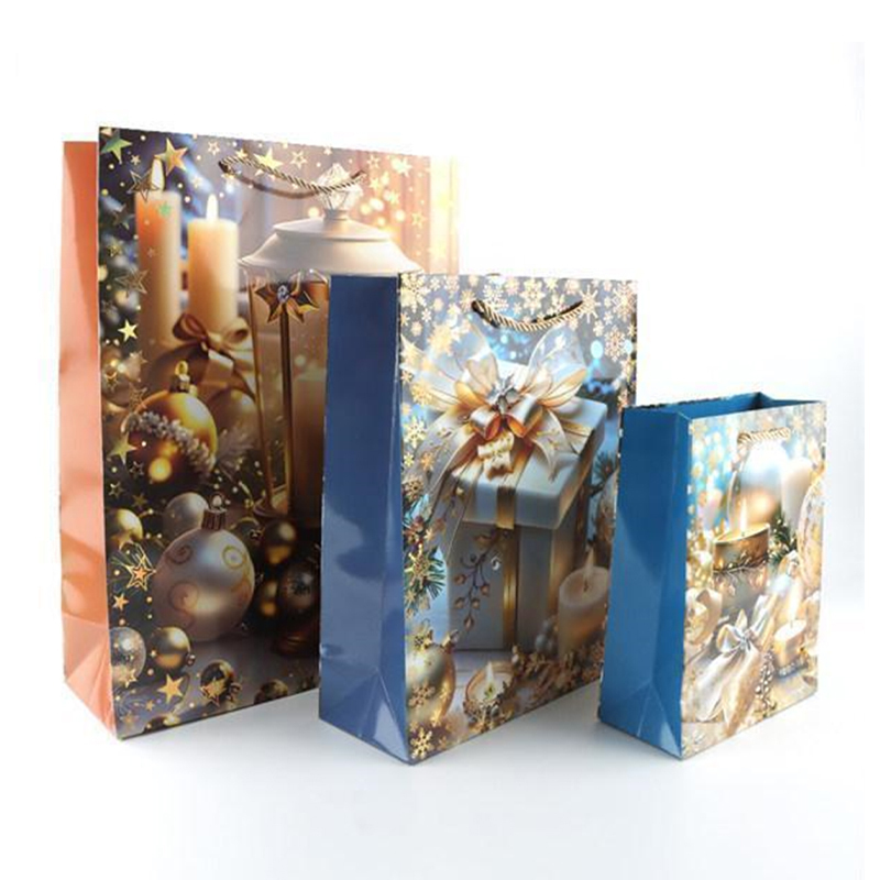 пакет 18 х 23 х 8 подарочный 3шт подарок новогодний (синий, белый)