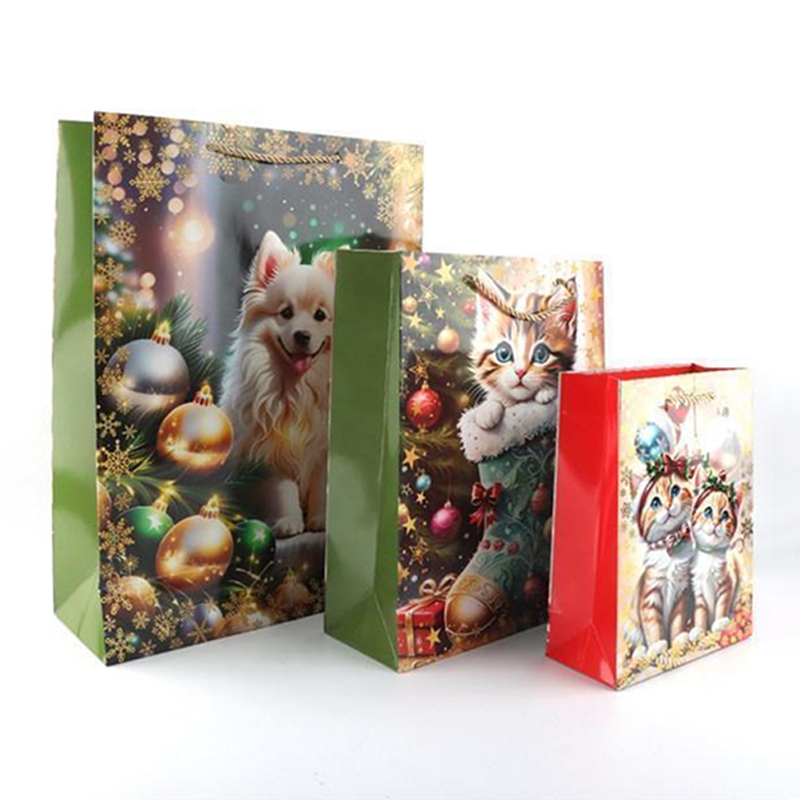 пакет 18 х 23 х 8 подарочный 3шт животные новогодний (бежевый)