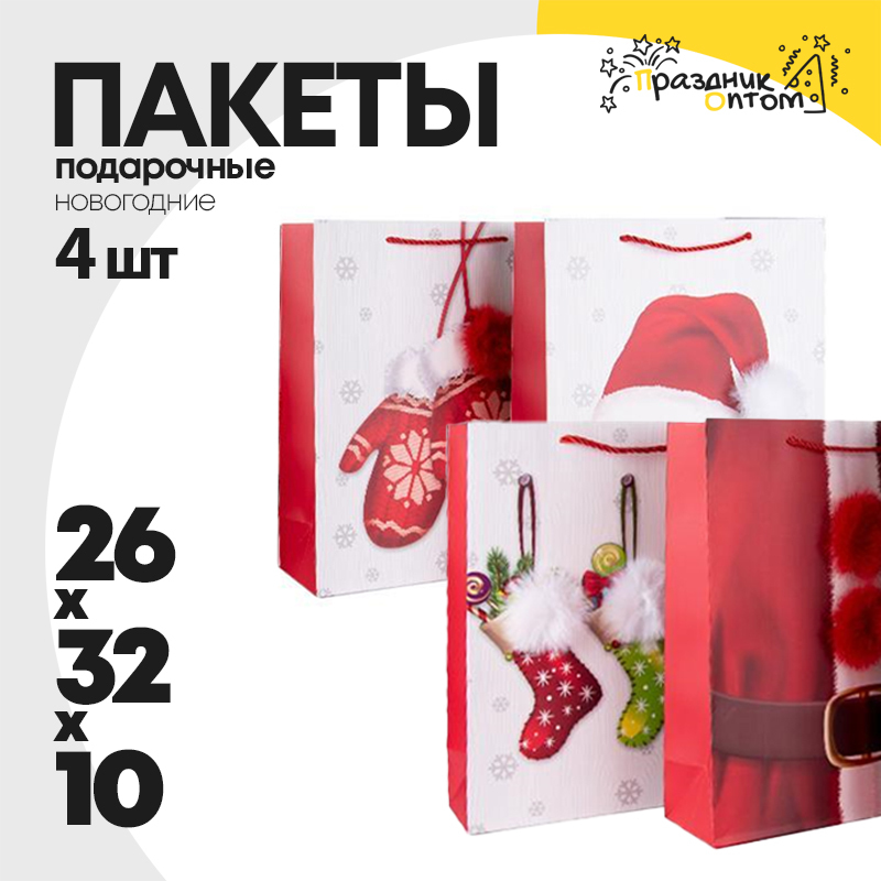 пакет 26 х 32 х 10 подарочный 4шт новогодний набор (красный, белый)