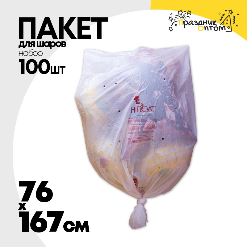 Пакет Для надутых шаров Набор 100шт 167 х 76 см (Прозрачный)