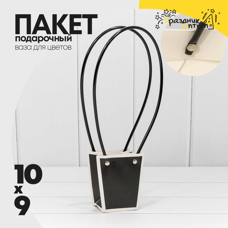 Пакет подарочный 10х9х6.5см Ваза для цветов (Белый, Черный)