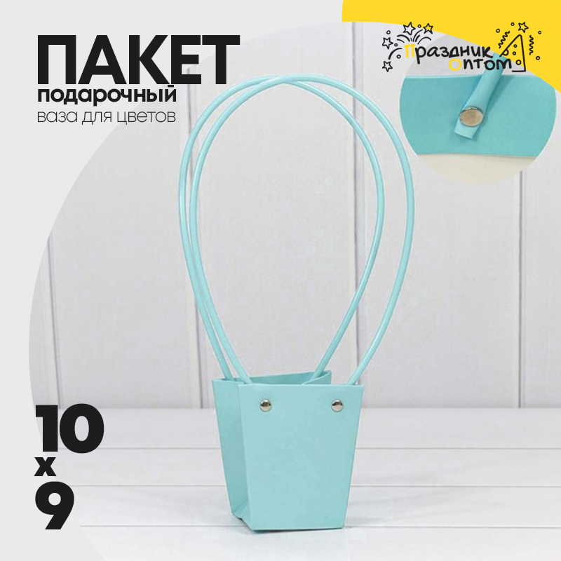 Пакет подарочный 10х9х6.5см Ваза для цветов (Голубой)