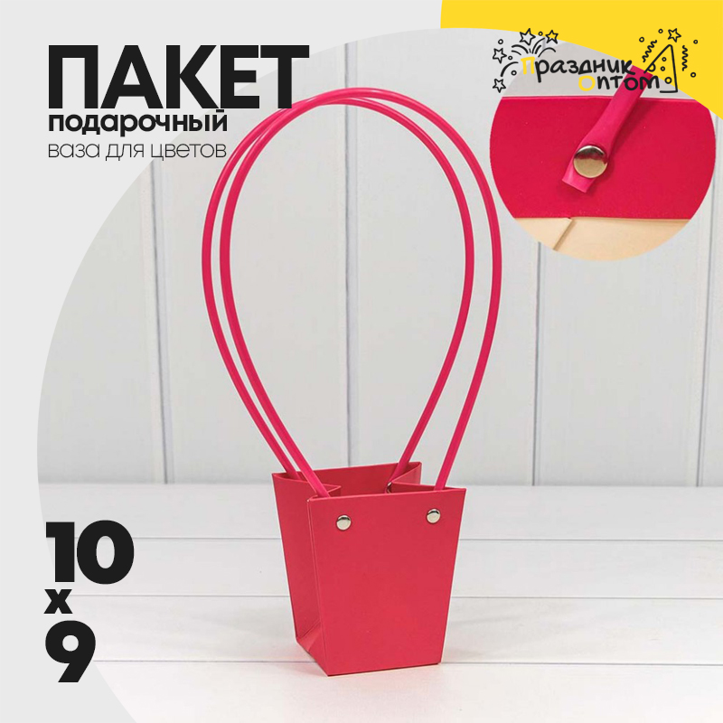 Пакет подарочный 10х9х6.5см Ваза для цветов (Малиновый)