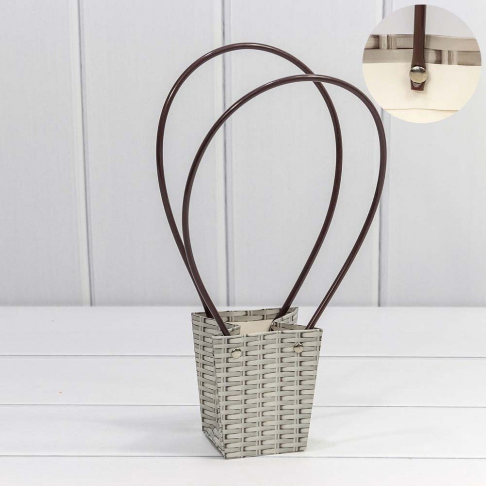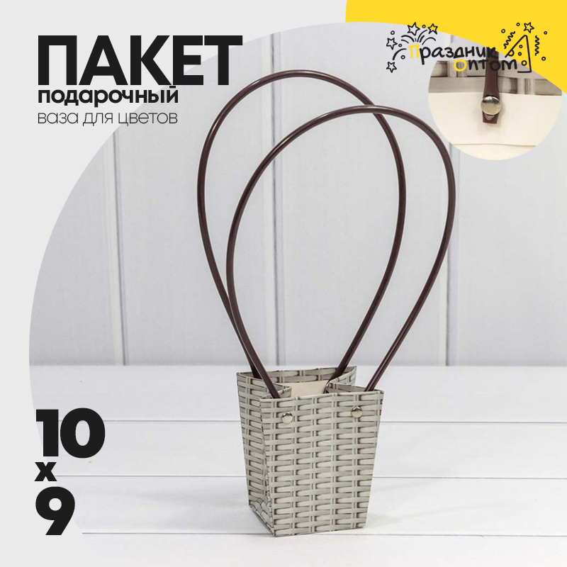 Пакет подарочный 10х9х6.5см Ваза для цветов "Плетёный" (Серый)