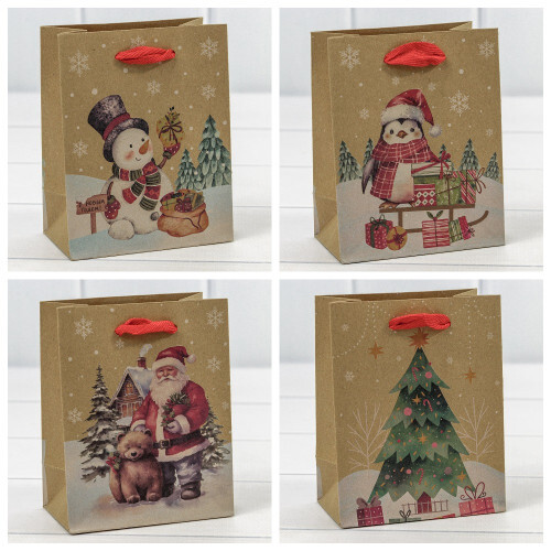 Пакет подарочный 12 х 15 х 6.7 см Набор 4 шт "Крафт" (Крафт)