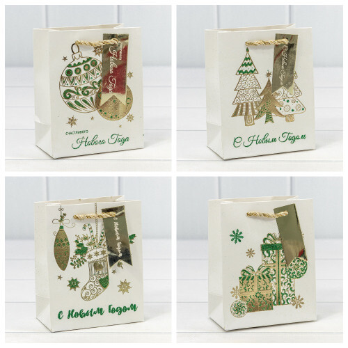 Пакет подарочный 12 х 15 х 6.7 см Набор 4 шт "Новый год" (Белый)