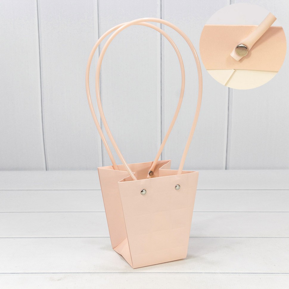 Пакет подарочный 12.5х12х8см Ваза для цветов "Квадраты" (Персиковый)