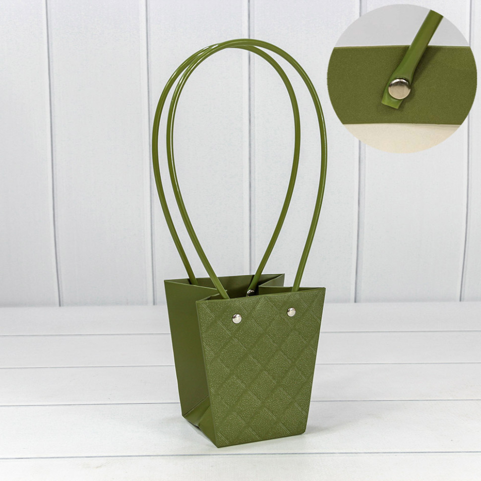 Пакет подарочный 12.5х12х8см Ваза для цветов "Ромбы" (Зеленый)