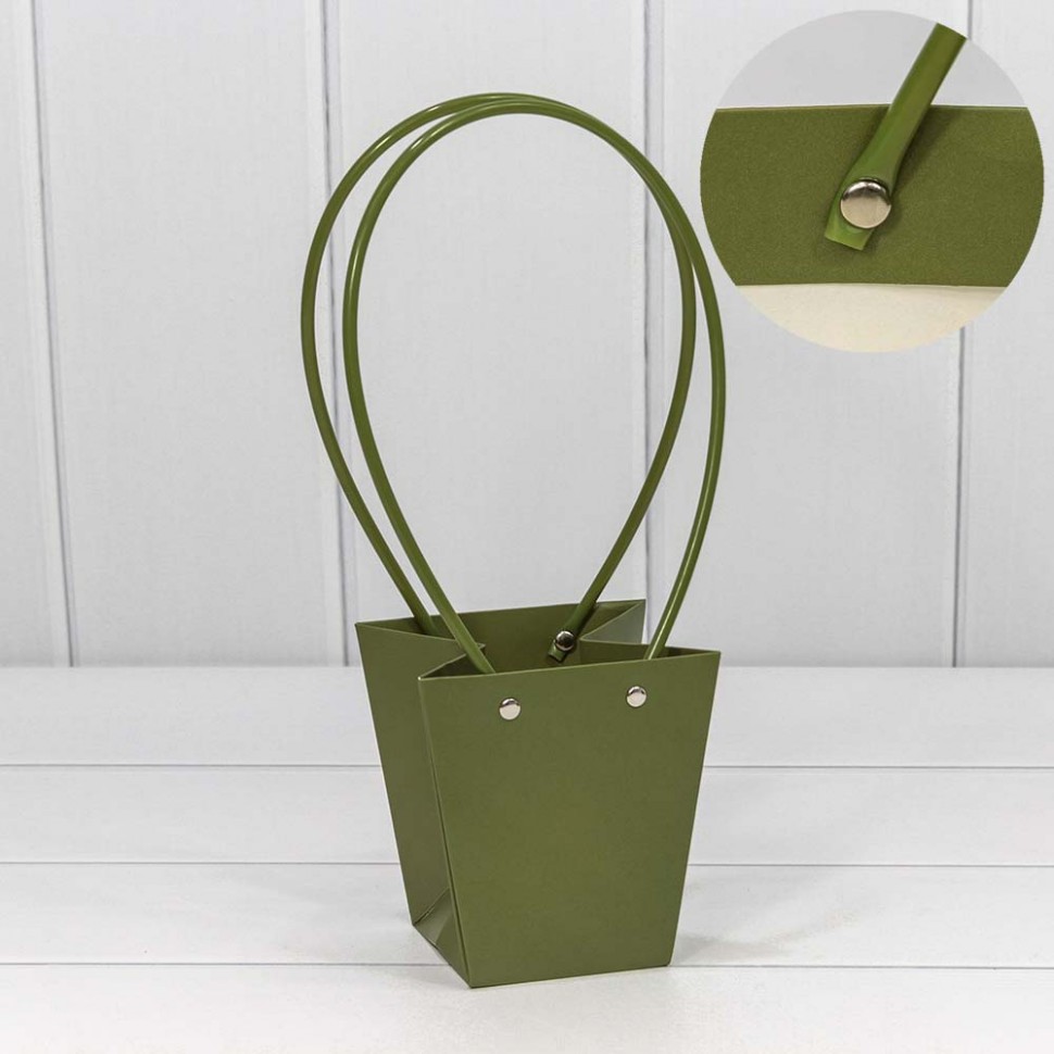 Пакет подарочный 12.5х12х8см Ваза для цветов (Зеленый)