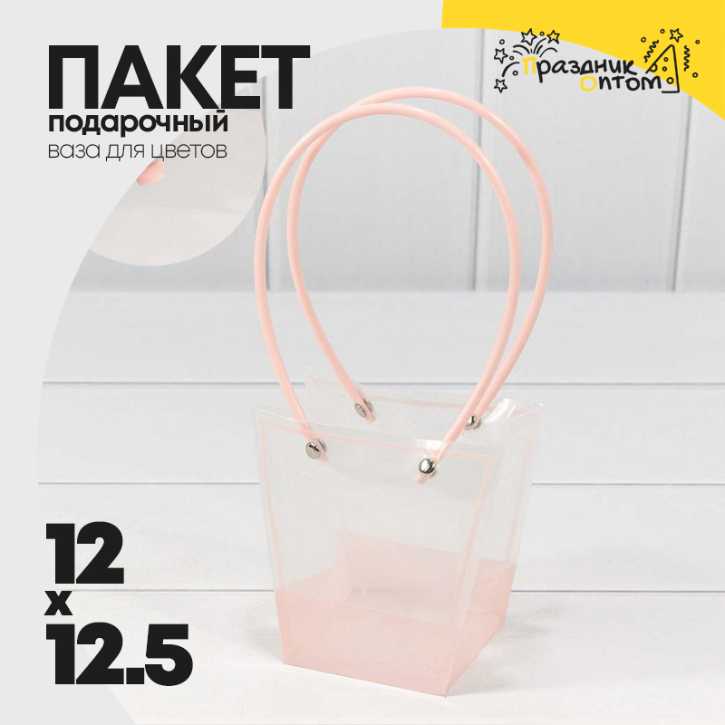 Пакет подарочный 12х12.5х8см Ваза для цветов (Розовый)