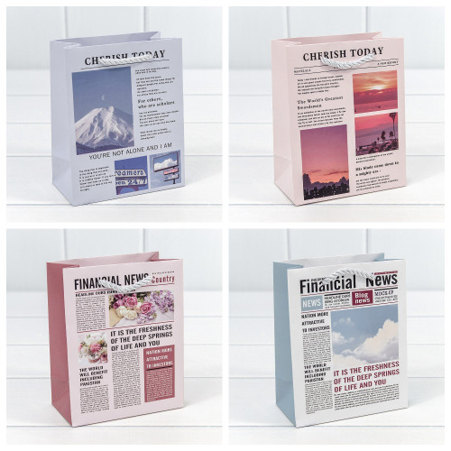 Пакет подарочный 12х15х5.5см Фигуры и узоры "Газета" (Микс)