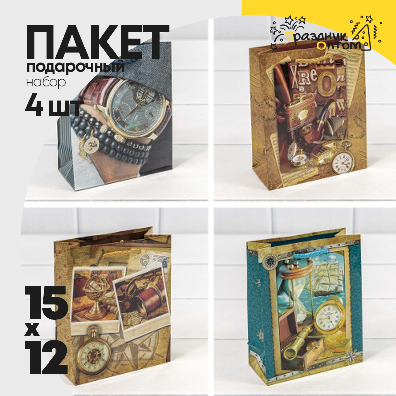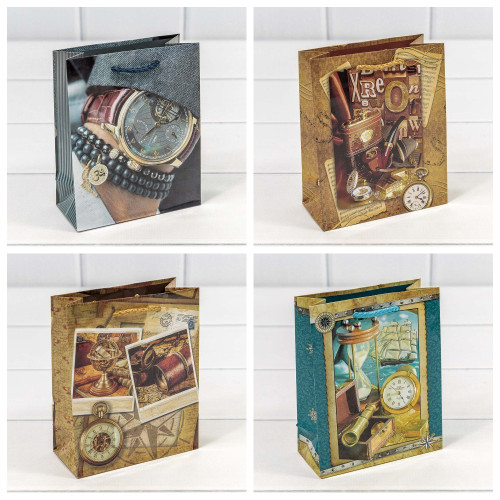 Пакет подарочный 12х15х5.5см "Мужской" глянцевый (Микс)