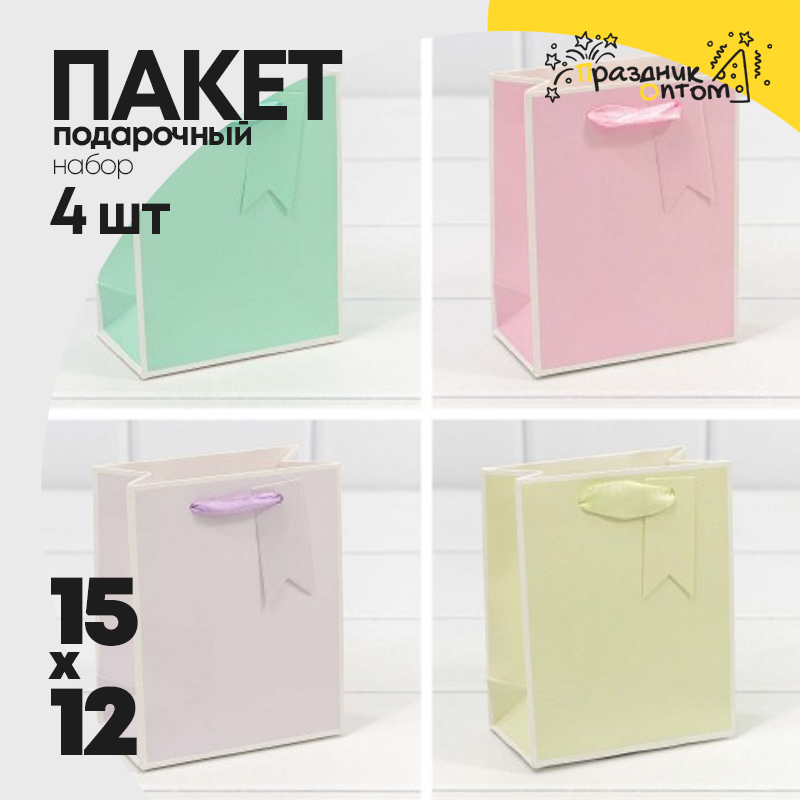 Пакет подарочный 12х15х6.7см Премиум однотонный в рамке (Микс)