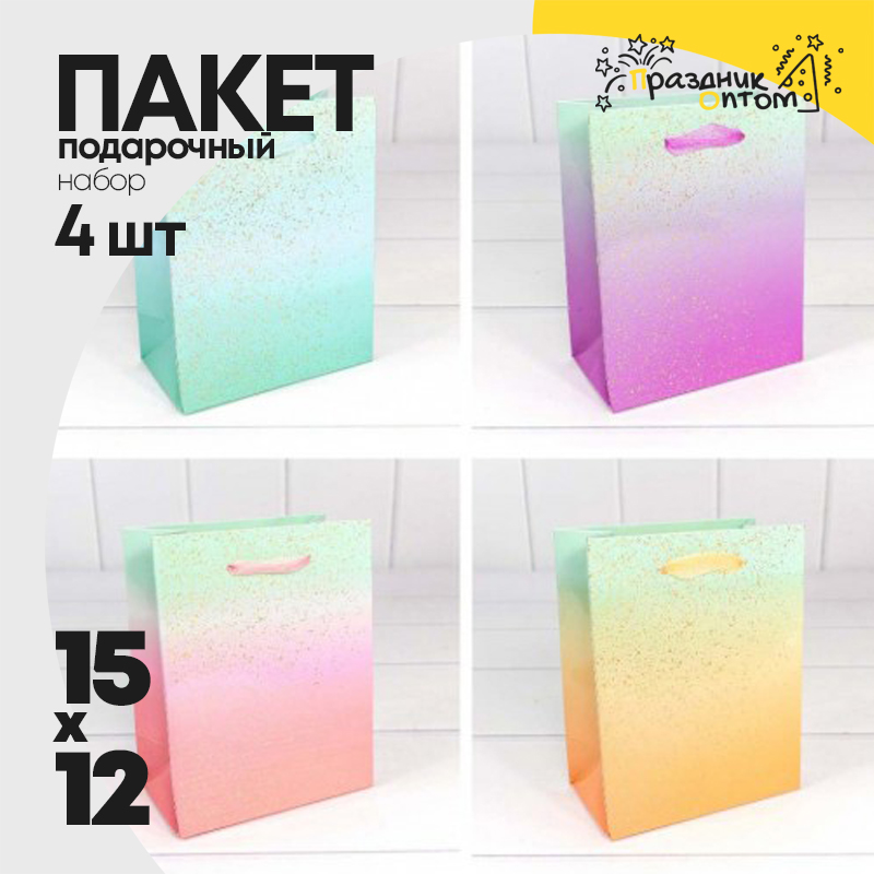 Пакет подарочный 12х15х6см "Градиент" с блестящими вкраплениями (Микс)
