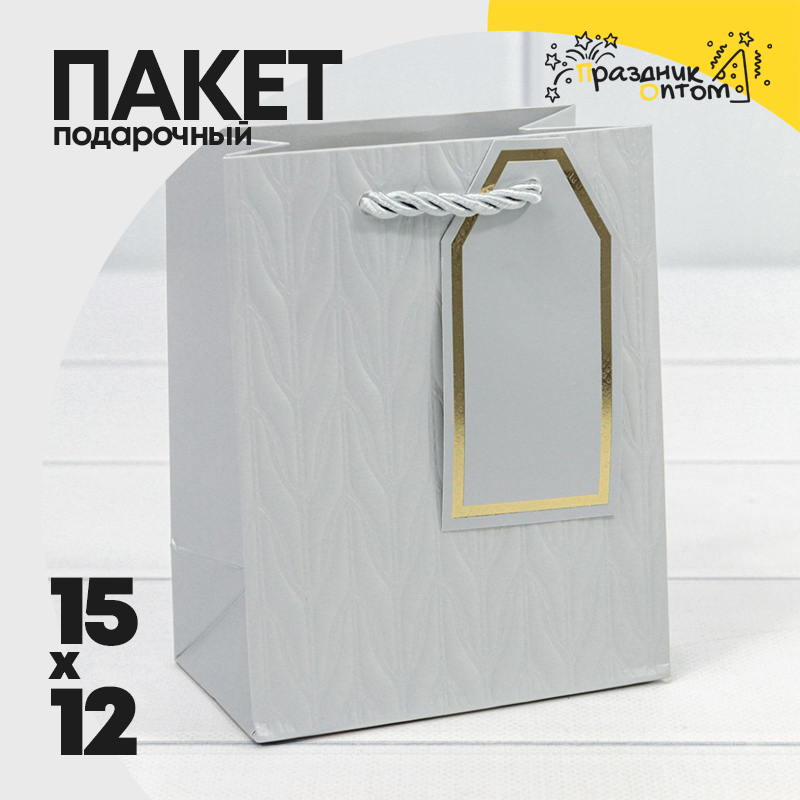 Пакет подарочный 12х15х7см Премиум "Узор" (Серебряный)