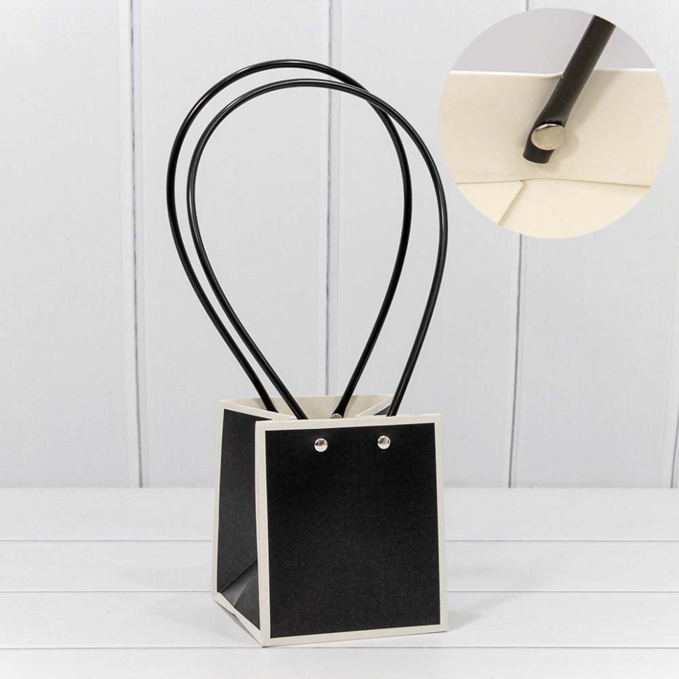 Пакет подарочный 13х11.5х10.5см Ваза для цветов (Белый, Черный)