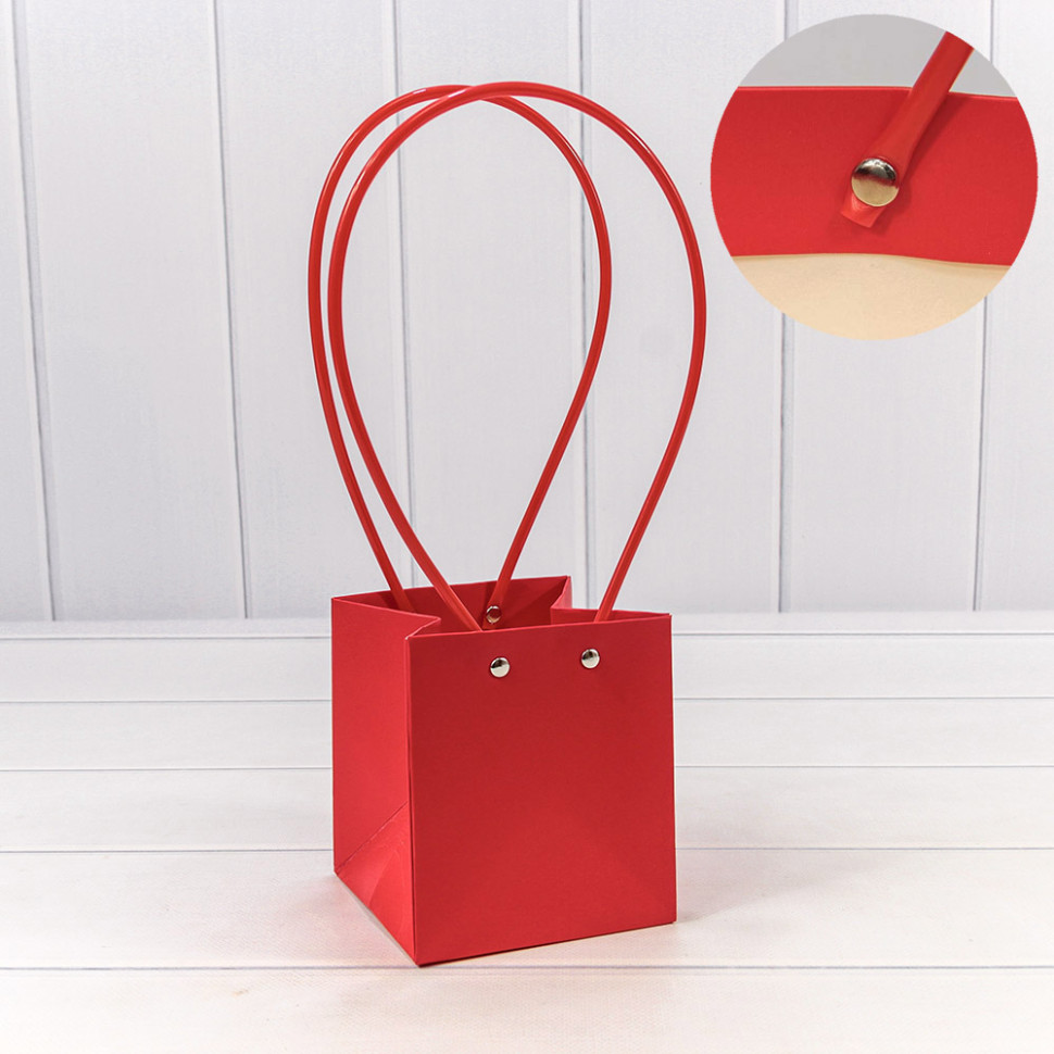 Пакет подарочный 13х11.5х11.5см Ваза для цветов (Красный)