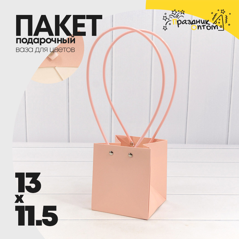 Пакет подарочный 13х11.5х11.5см Ваза для цветов (Розовый)