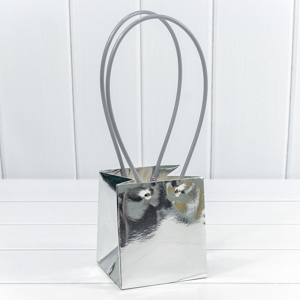 Пакет подарочный 13х11.5х11.5см Ваза для цветов (Серебряный)