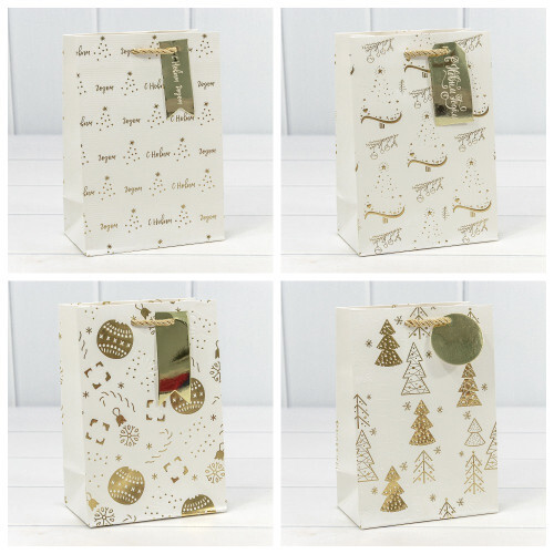Пакет подарочный 14 х 20 х 8 см Набор 4 шт "Новый год" с тиснением (Белый)