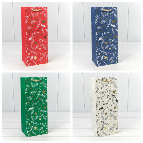 Пакет подарочный 14 х 35 х 11 см Набор 4 шт "Новый год" Под бутылку (Микс)