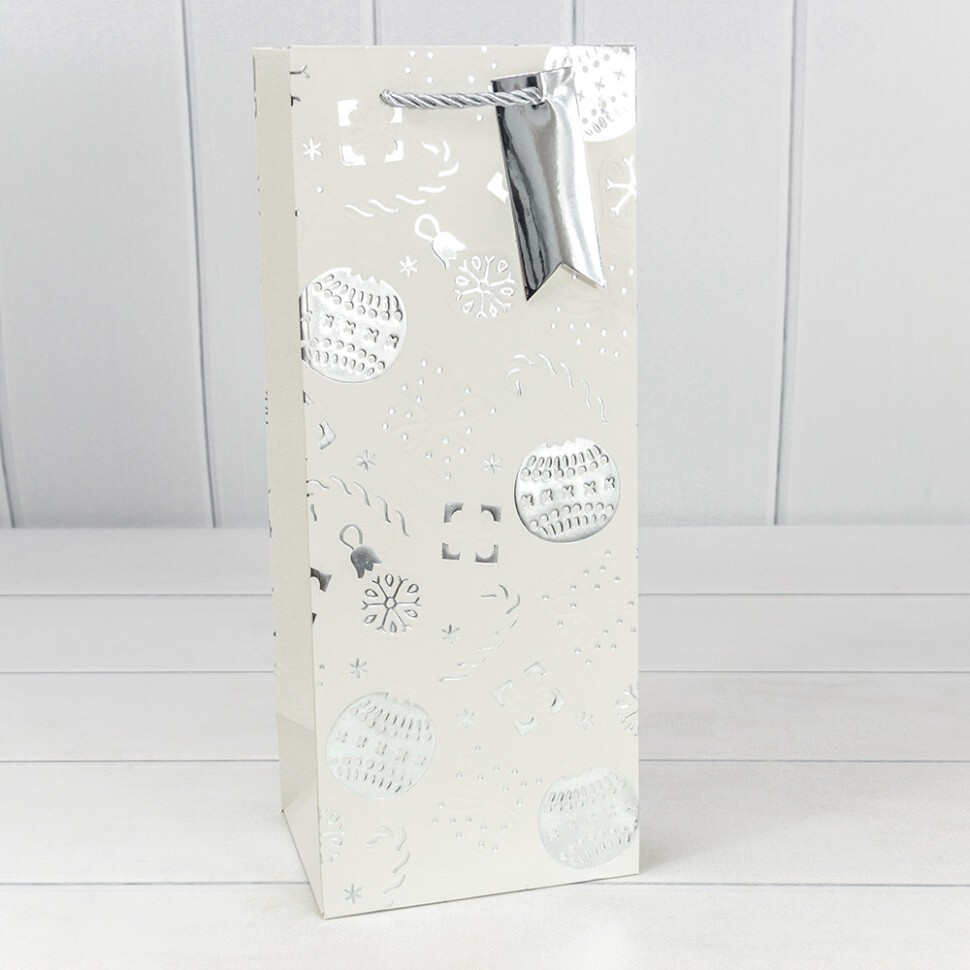 Пакет подарочный 14 х 35 х 11 см "Новый год" Под бутылку (Белый)