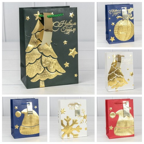Пакет подарочный 14 х 20 х 8 см Набор 4 шт "Новый год" (Микс)