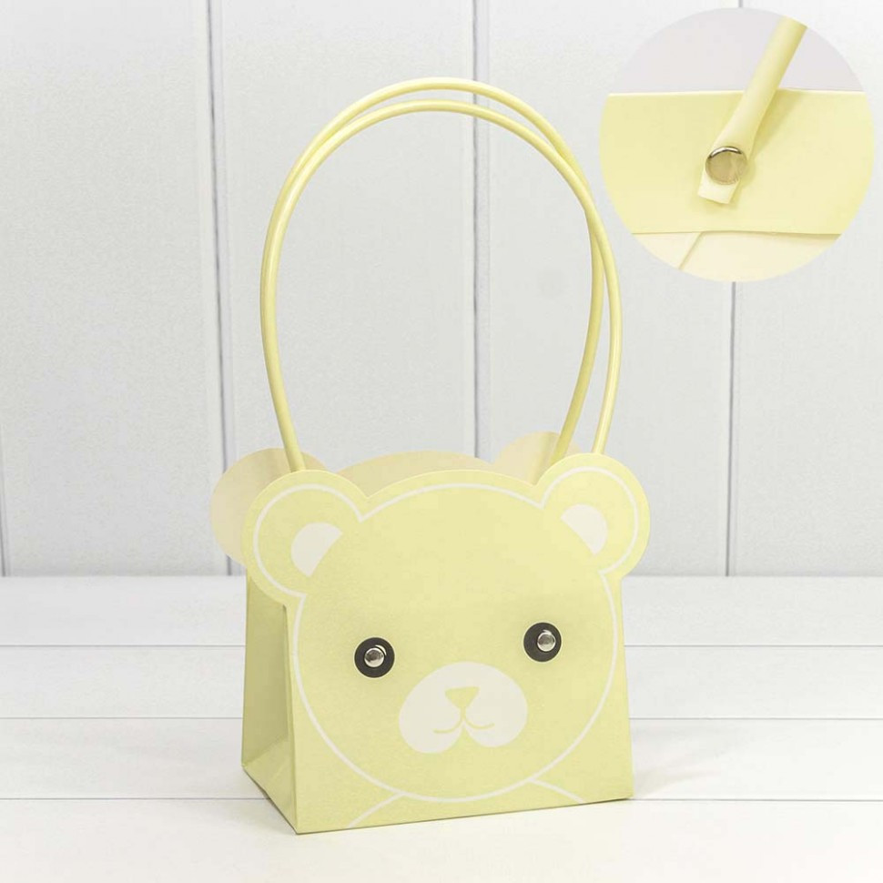Пакет подарочный 14.5х10х14.5см Ваза для цветов "Мишка" (Бежевый)