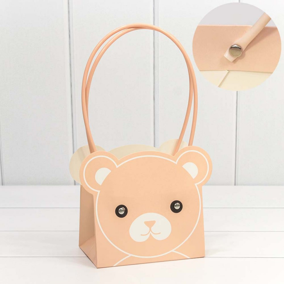 Пакет подарочный 14.5х10х14.5см Ваза для цветов "Мишка" (Персиковый)