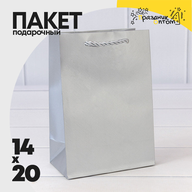 Пакет подарочный 14х20х8см "Фактура" (Серебряный)