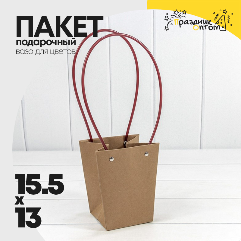 Пакет подарочный 15,5х13х9,5 Ваза для цветов (Крафт)