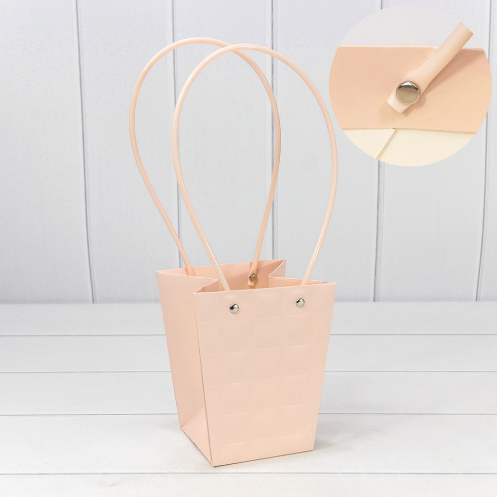 Пакет подарочный 15.5х13х9.5см Ваза для цветов "Квадраты" (Персиковый)