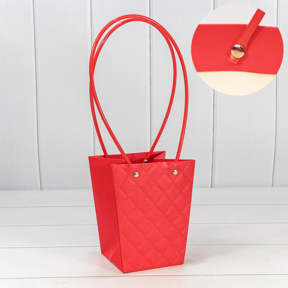Пакет подарочный 15.5х13х9.5см Ваза для цветов "Ромбы" (Красный)